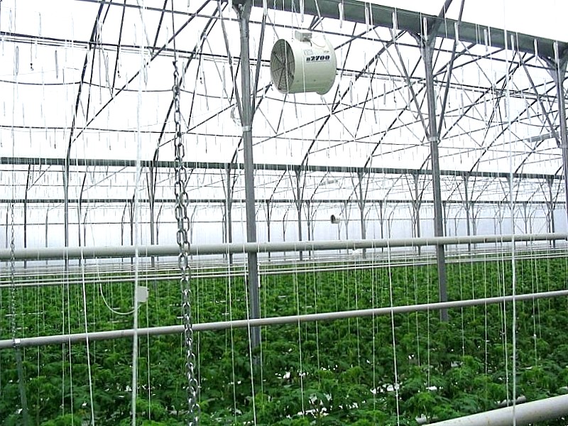 Biljke kao što je npr. rajčica isparavaju ogromne količine vlage tijekom dana. Mnogo te vlage se zadržava u stakleniku/plasteniku tijekom noći. Dobar sustav grijanja može smanjiti vlagu i održati biljke suhima, ali je za to potrebna ogromna količina energije. Koristeći ventilatore s horizontalnim kolanjem zraka, kao dodatak grijanju, za održavanje suhoće lišća možete uštedjeti veliku količinu energije.